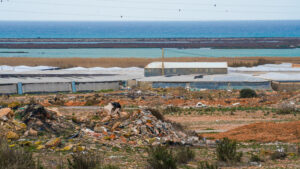 Die Ausbeutung der afrikanischen Arbeitskräfte ist bekannt und wird kaum verborgen gehalten. Zwischen den Reihen der Gewächshäuser finden sich immer wieder Bauten aus Plastikmüll, die oft behelfsmäßig an Ruinen angelehnt sind. Die ‘Chabolas’, die Hüttensiedlungen, sind aus alten Planen der Gewächshäuser gebaut und beherbergen die Ärmsten der Armen. Die Menschen arbeiten unter Plastik, sie schlafen unter Plastik.