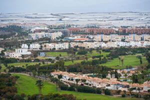 Er lässt den Blick schweifen. Zunächst schaut er hinunter auf Almerimar und den zentralen Golfplatz, anschließend auf das angrenzende Meer. Auf mich achtet er nicht, obgleich er meine Anwesenheit bemerkt hat. Schließlich geht sein Blick über die Urbanicazión hinweg und auf den weiteren Verlauf der Anhöhe. Er schaut auf die langen Bahnen aus weißen Planen, die dort zu Gewächshäusern aufgerichtet wurden.