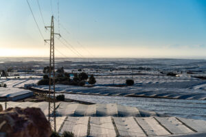 Auf meinem Weg Richtung Süden machte ich einen Umweg durch die Poniente Almeriense, da sich rund um die Regionalhauptstadt El Ejido die größte Konzentration von landwirtschaftlicher Intensivkultur der Welt befindet. Auf gut 350km2, einer Fläche größer als München, wurde das Land hier mit Plastikfolie überspannt, unter der Tomaten, Gurken, Auberginen und Zucchini kultiviert werden. Auf Satellitenbildern erkennt man gut die Vollständigkeit, mit der das ‘Mar del plástico’ die Region bedeckt. Abseits von Straßen und Städten gibt es keinen freien Quadratmeter, kein Stück Boden, das nicht von einem Gewächshaus versiegelt ist.