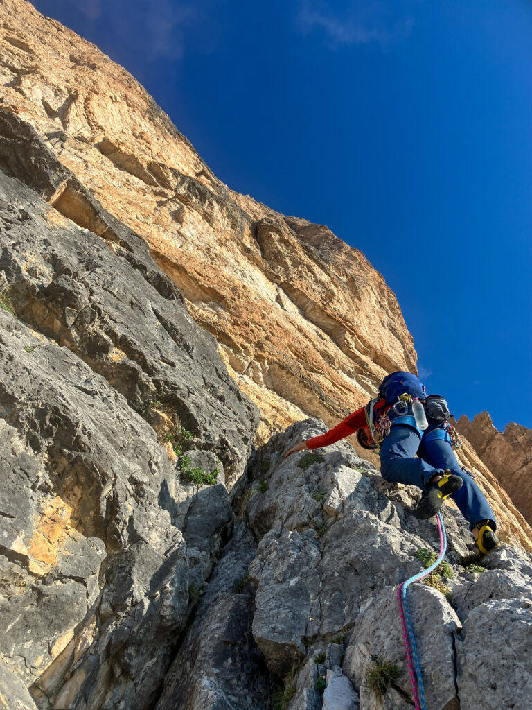 Es ist eine dieser klassischen Touren, die man sofort nochmals klettern würde — ganz gleich ob mit ausdauernden Freikletterambitionen, die am zweiten Dach auf die Probe gestellt werden, oder direkt mit Fixpunktunterstützung und dafür im besten Flow.