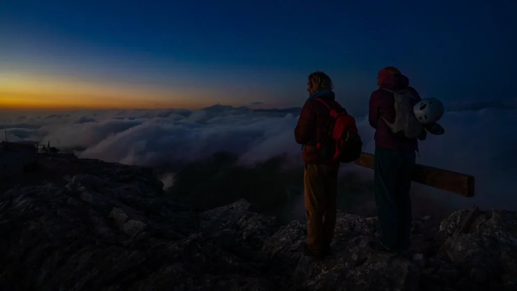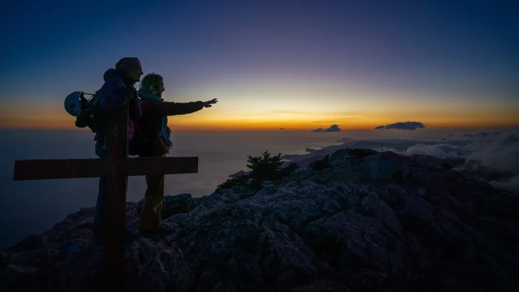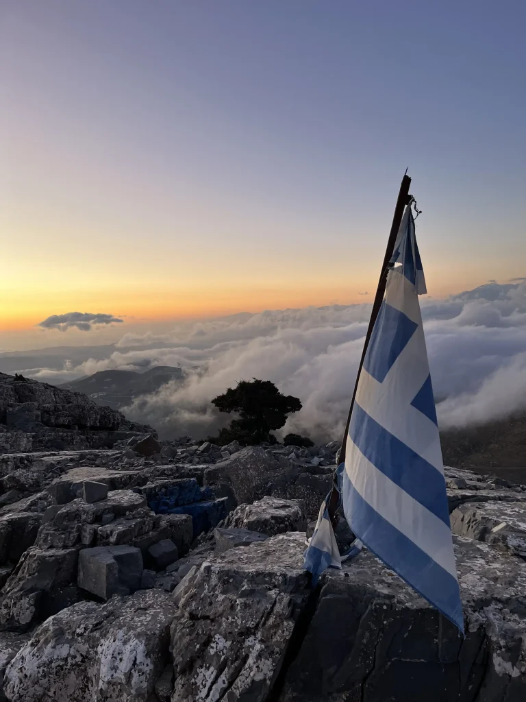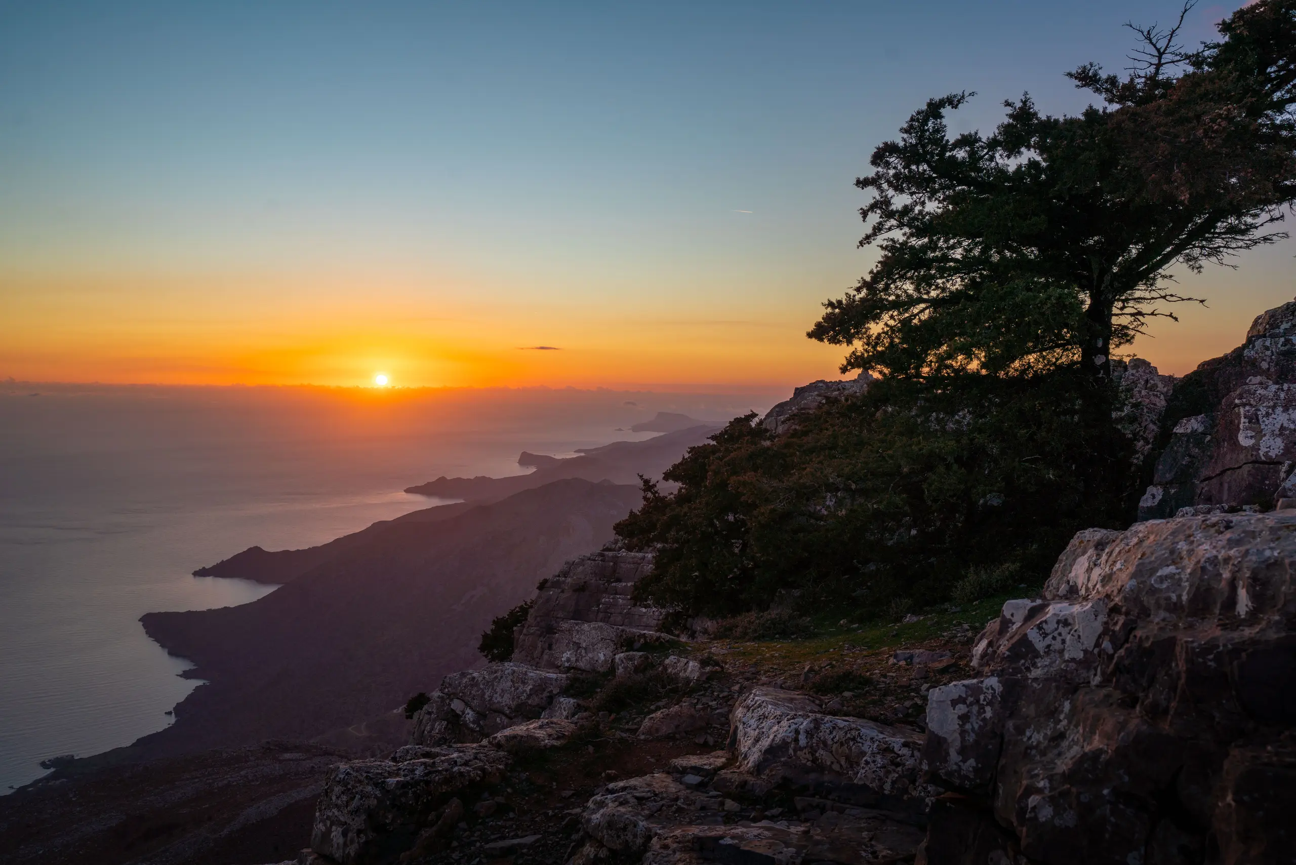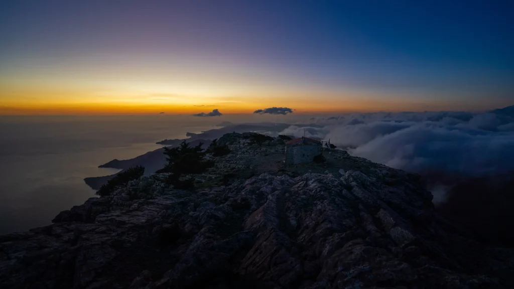 Belohnt werden wir mit einem majestätischen Sonnenuntergang in 1200m gerader Linie über dem Meer. Und einem Gipfel, der den Ausgrabungen nach seit 4000 Jahren als Heiligtum verehrt wird. Verständlich.