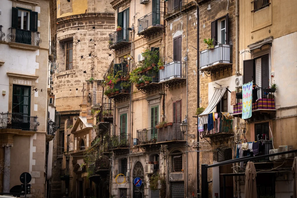 Vielleicht hat es mit der besonderen Struktur der Zeit zu tun, in der hier gelebt wird. Die sizilianische Sprache kennt keine Futur-Form. Das ist erstmal ein Fakt und mit der kulturellen Interpretation solcher Dinge sollte man vorsichtig sein. Und doch scheint sich etwas davon in der Architektur oder zumindest ihres Zustandes widerzuspiegeln. Vor Jahrhunderten lebten Adel und Klerus hier weit über ihre Verhältnisse und bauten mächtig und mächtig prunkvoll. Eine Fremdherrschaft löste die vorangegangen ab und jeder wollte prächtiger bauen als die letzte. Der Wirtschaftsleistung der Insel entsprach dies zu keiner Zeit, vor allem nicht heute. Und so bröckelt die Grandezza ungehindert zu Boden, wo sie mit dem vielen Müll an eine Straßenecke zusammengeschoben und schließlich liegengelassen wird, bis ihn jemand abholt oder auch nicht. Ist es die Widersprüchlichkeit zwischen den bröckelnden Fassaden und der allgegenwärtigen opulenten Architektur, die mir so einmalig erscheint? Diese schutzlose Gegenwart ohne grammatikalischen Zufluchtsort im Morgen, ein endloses Jetzt, das weder Abriss noch Restaurierung kennt?